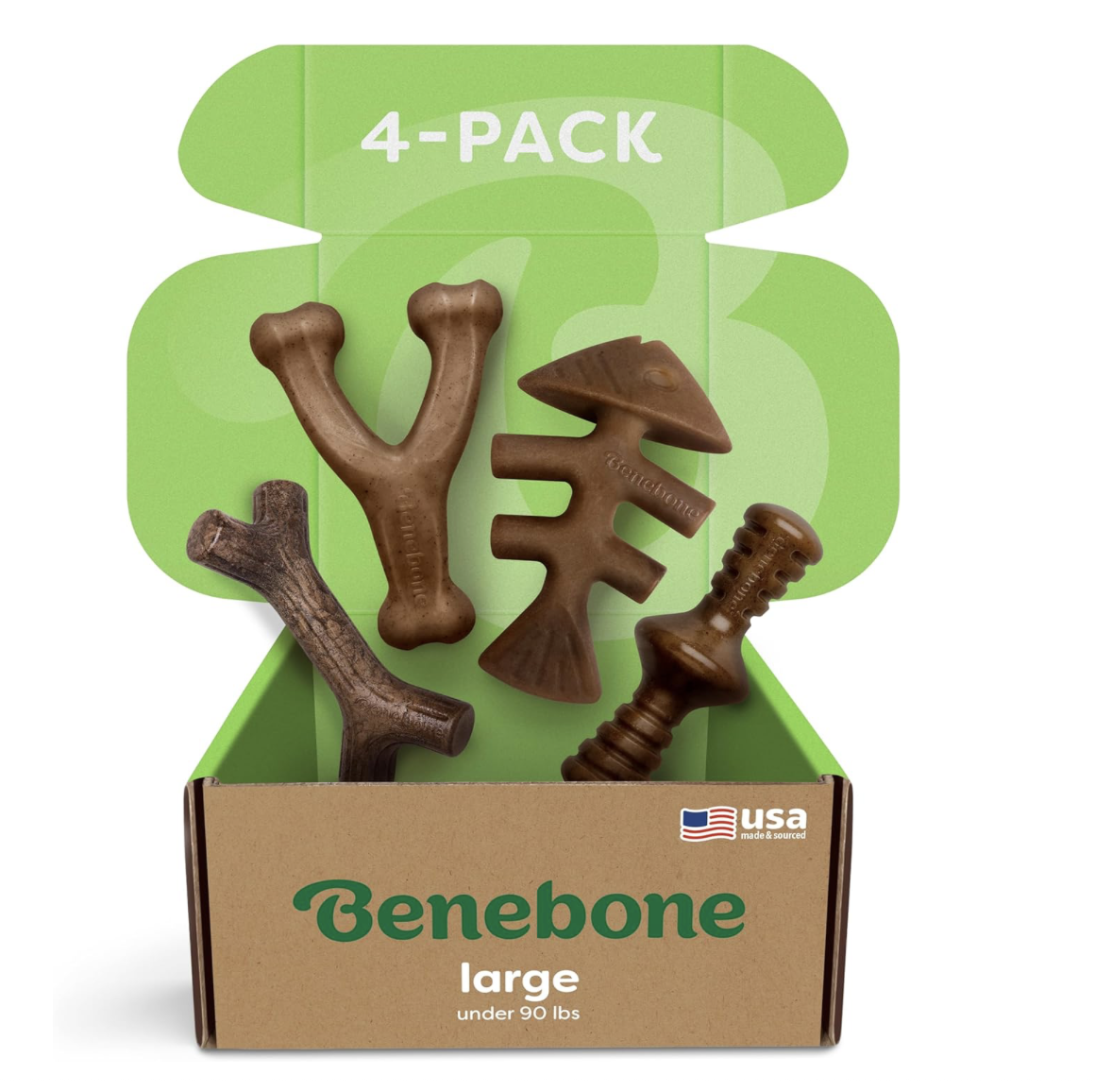 It is essential to provide an appropriate way for your puppy to satisfy their need to chew. Benebone and Nylabone chews are great options. Purchase a variety of shapes and rotate which ones your dog has access to in order to keep them novel. Only give your dog the appropriate size and durability option suited to your dog’s age and weight. Discard if your dog wears the bone down to a small piece.