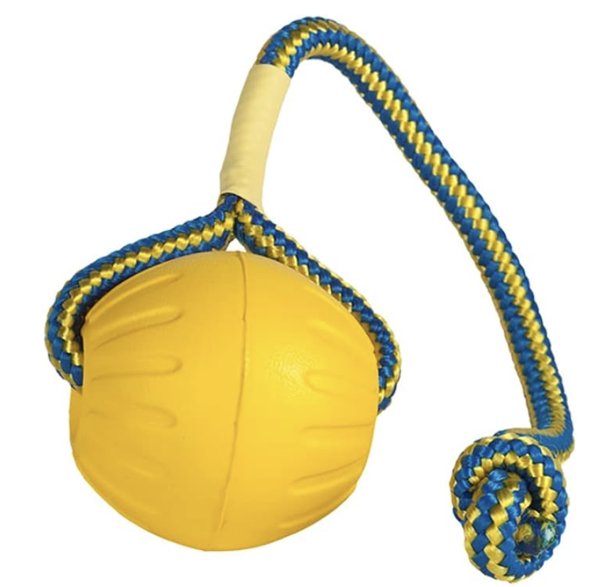 These foam balls are a favorite among many tug loving dogs. Even though made of foam, they are very durable and allow you the option to use for both retrieves and tug. You can also find them more economically on Temu.com. These balls float and are great for water retrieves. Additionally they do not bounce so they are great for toy play in indoor spaces!